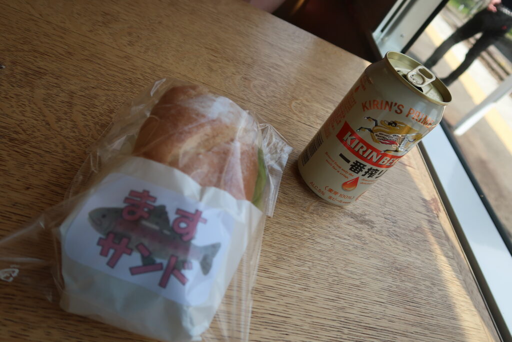 やはり旦那、ゆべしやあたりめでは足りなかったらしく、すかさずますサンド(税込600円)を購入。