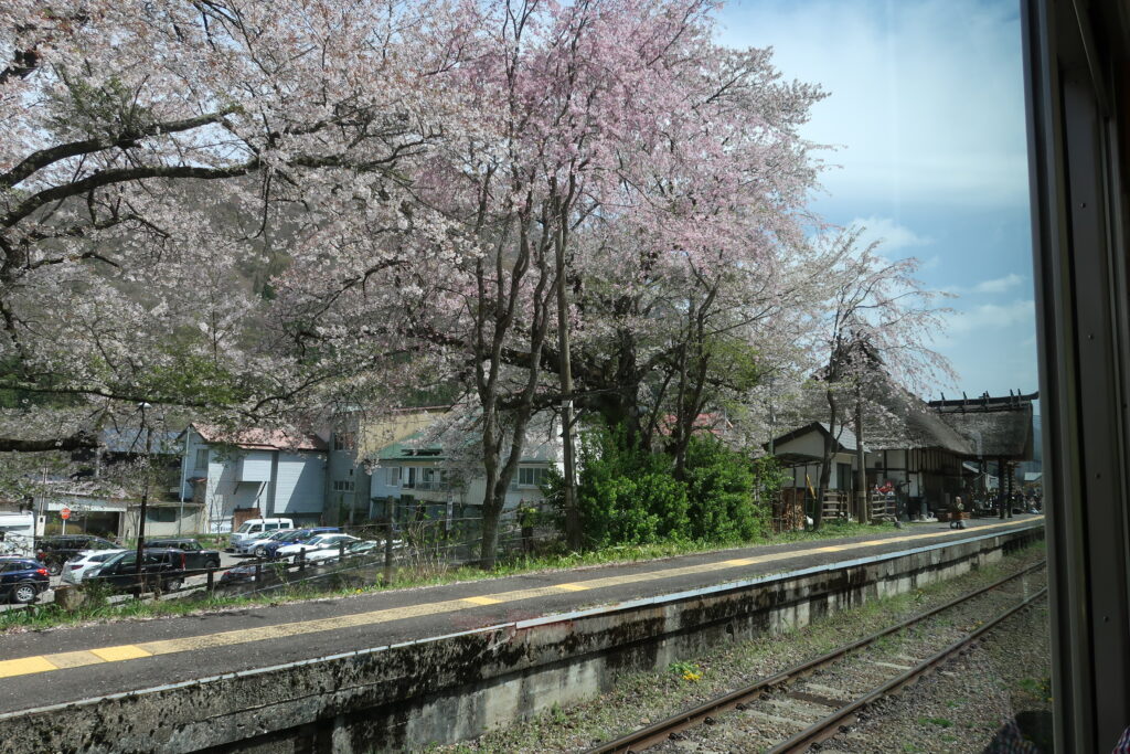 道々、会津田島駅にたどり着く途中は、いい感じの桜が咲いていました。