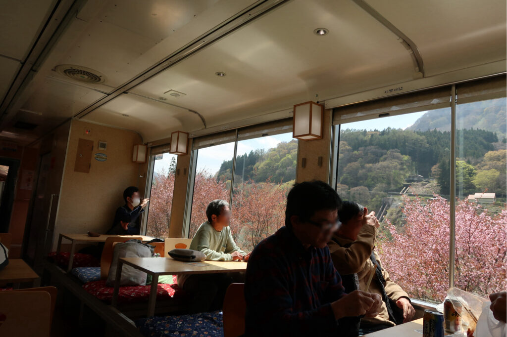 春爛漫、桜満開のお座トロ展望列車に乗りたくて、今回初チャレンジしたのですが、正直時期は少し外してしまったと思います💦