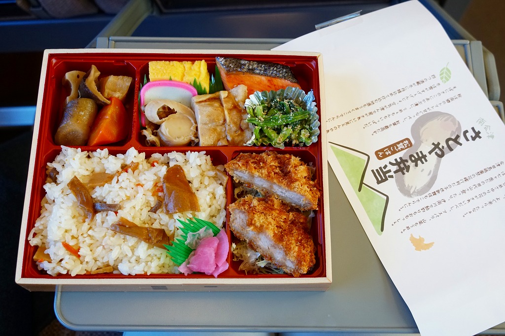 車内販売もあるけど、お弁当はないんだよ、と教えてあげたら、お弁当の売店でゆべしを買って食べてました。